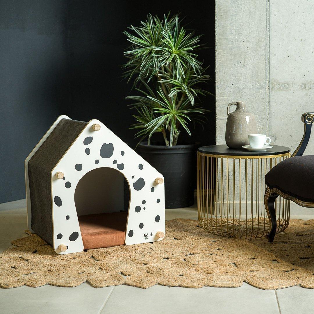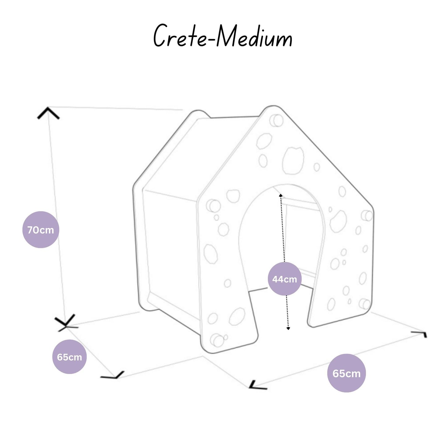 Crete is a luxurious wooden indoor dog home with an adorable design. It offers a comfortable and supportive pillow inside to keep your pet cozy while they rest. The pillow is easily washable for convenient maintenance. The roof is made of a durable, abrasion-resistant stretched fabric that allows for proper air circulation within the dog kennel. With its attractive design, Crete can be placed in the living room or bedroom to enhance the overall look of your home decor. Please note, this dog box is intended for indoor use and not suitable for outdoor use.